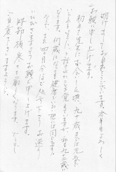 最初の方は、ある検査値が高いことがきっかけで受診した初診時83歳の男性です。現役の時は公務員で、何事にも真剣に取り組まれる几帳面な性格の持ち主です。検査値異常が解消した後も、生活習慣改善と基礎サプリメント摂取をしっかり継続され、92歳の今も毎日元気に農作業をこなしています。2026年年頭に新年の挨拶と共にいきいきとした暮らしぶりの嬉しい葉書が届きました。ご本人の快諾を得て文面を引用します。